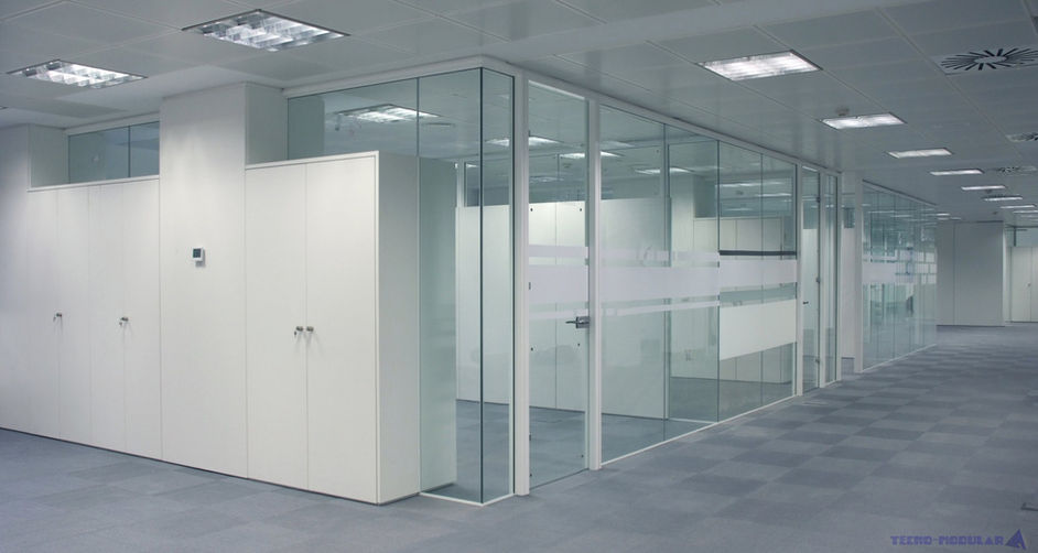 Fabricamos y diseñamos mamparas divisorias en vidrio y melaminas para distribuir los espacios de trabajo dentro de la oficina.
